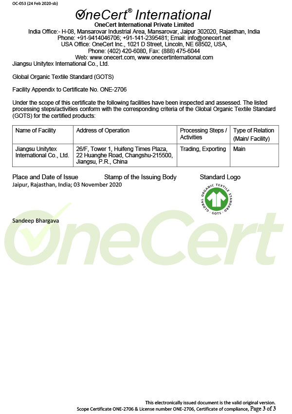 GOTS Certificate - UNITYTEX