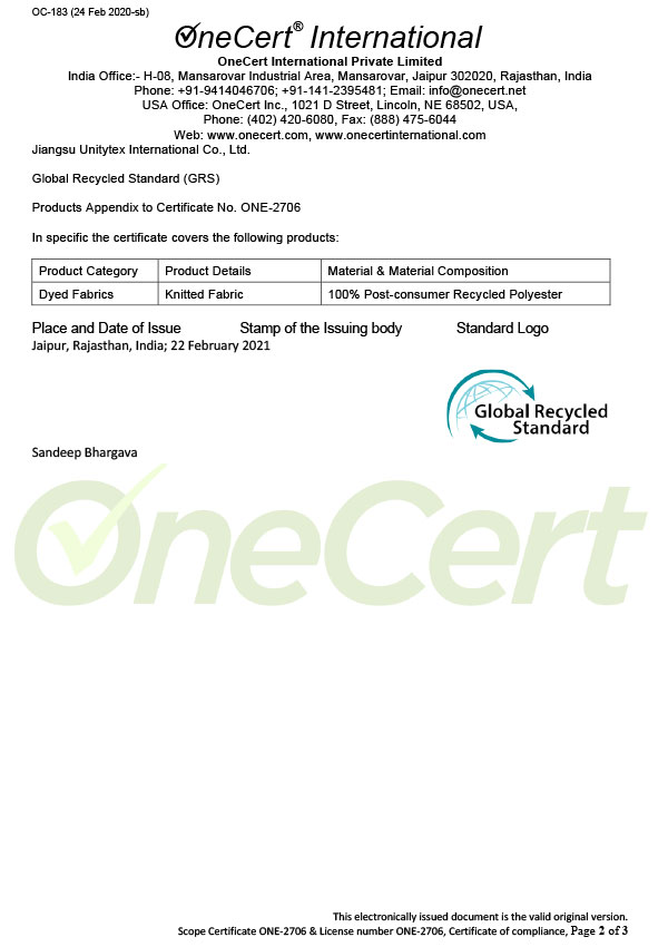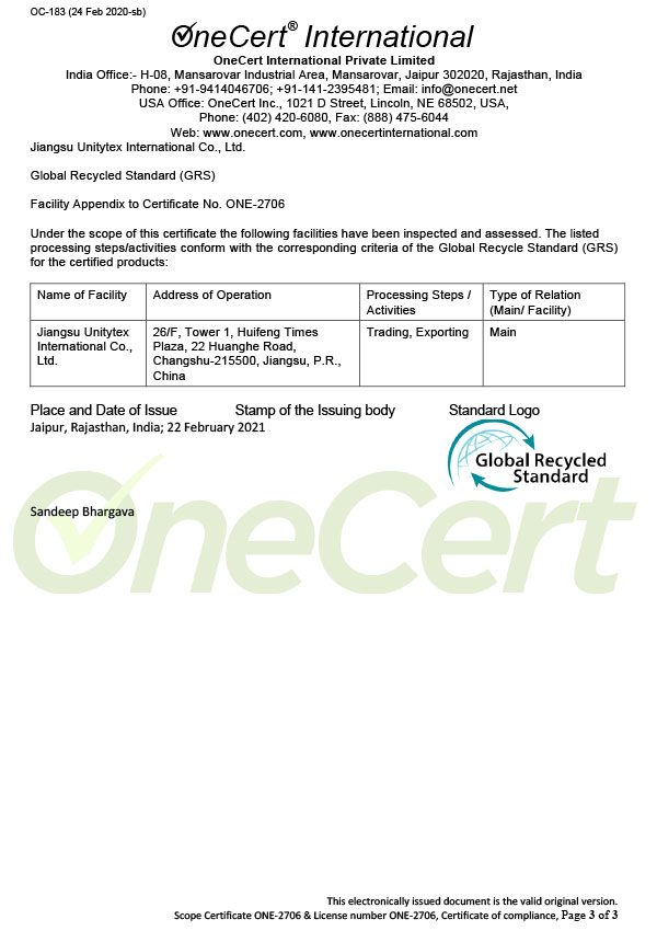 GRS Certificate -UNITYTEX